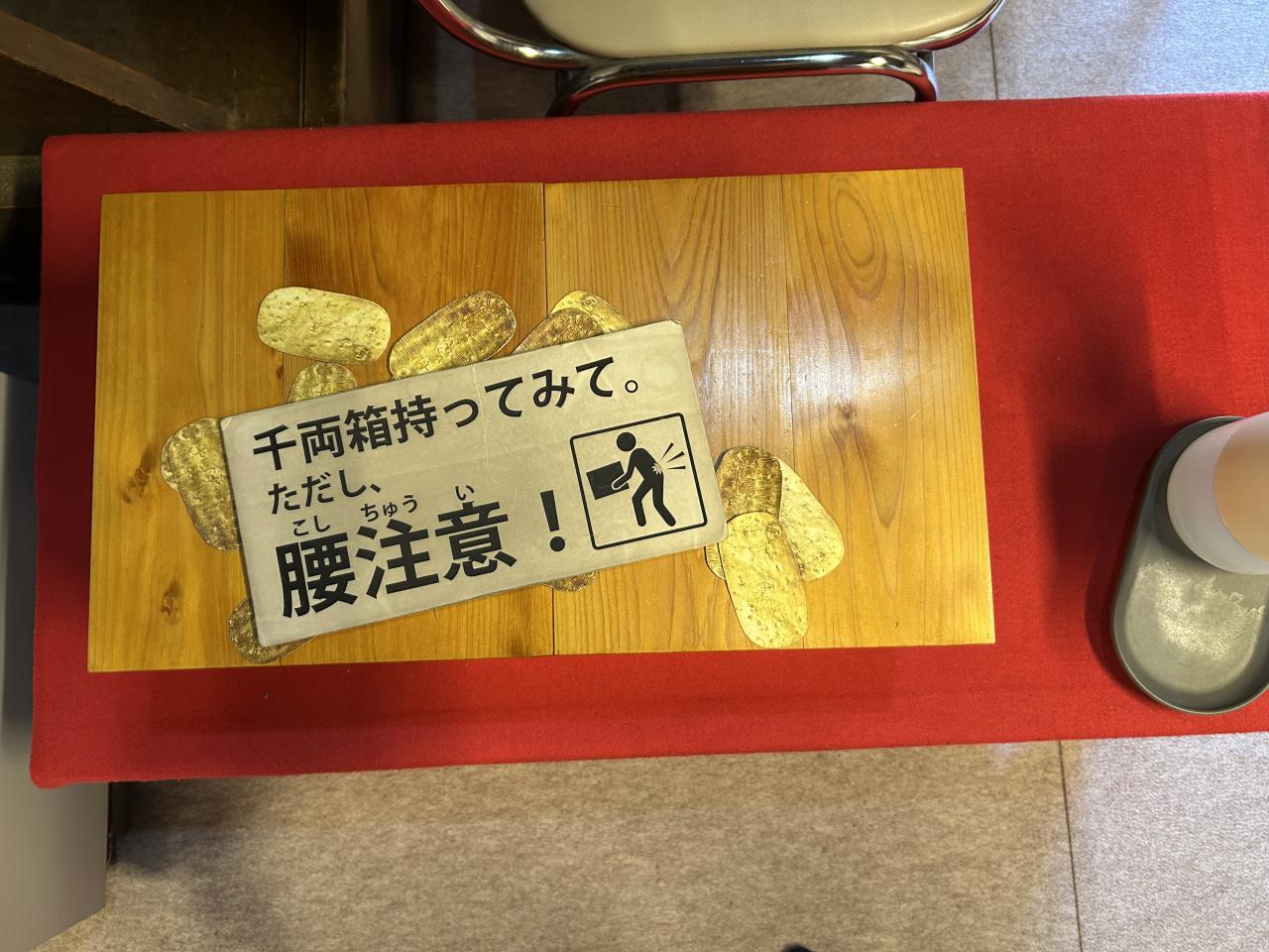 千両入った?千両箱の重さを実感できます。なかなかの重量でした。