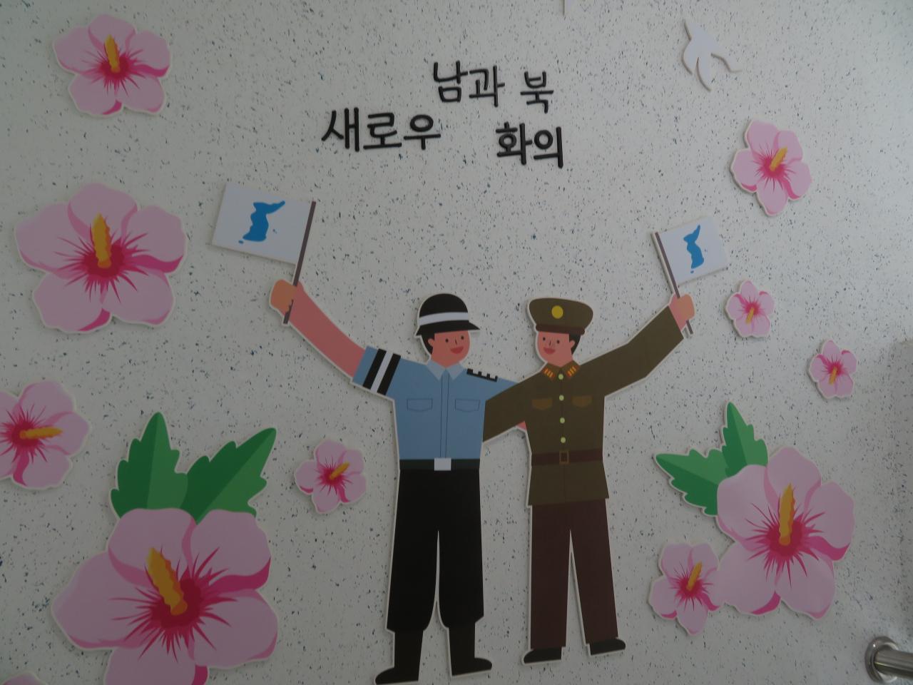 展望台内には簡単な展示もある。「東アジア唯一の分断国家」であるところの韓国と北朝鮮が分断された歴史的経緯や、