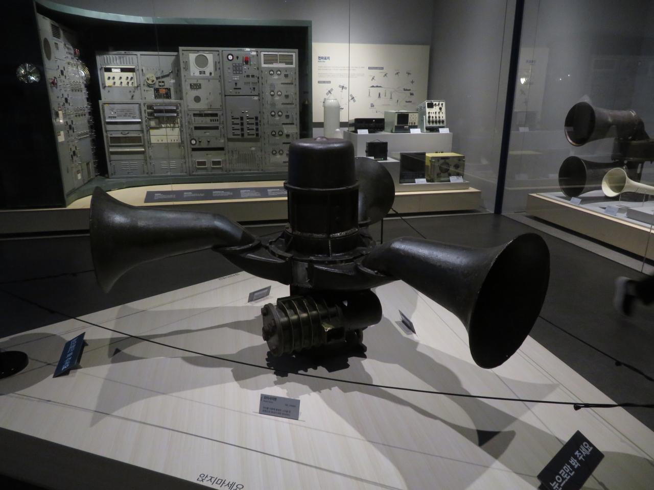 濃霧の際に、音で位置を知らせるために使用される霧笛(むてき)。