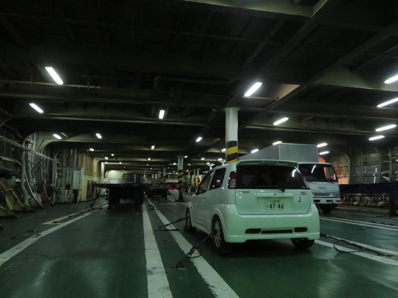 この日は秋夕だからか、韓国から日本に渡るクルマは、船に備え付けのトラックを除けば我がスイフト1台のみだった。車両甲板がだだっ広い。