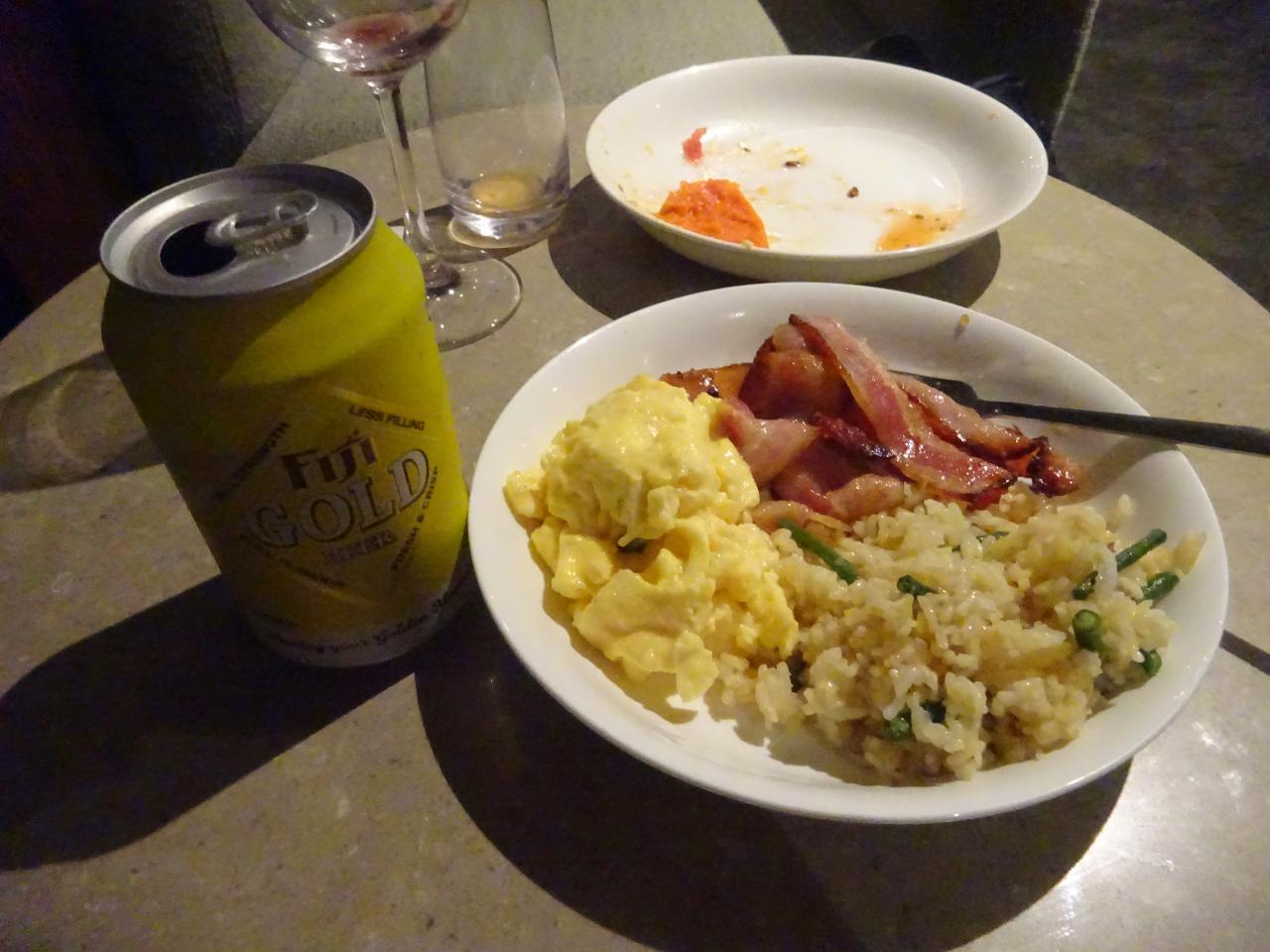 4)夕食(19:00-19:25)はHの部屋でパン・カップヌードル等で簡単に済ませます。シャワーを浴び就寝。 (泊)ツバル(フナフティ)EsfamH朝有