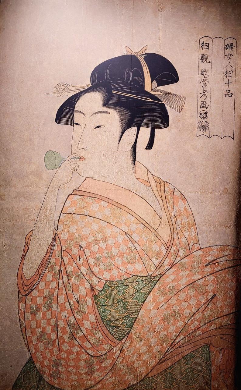 喜多川歌麿は蔦重のプロデュースによって美人画の大首絵で人気を博す。大首絵とは、それまで全身画がメインだった浮世絵を上半身のアップのみで描いたもの。よりブロマイドに近くなったという訳だ。 -