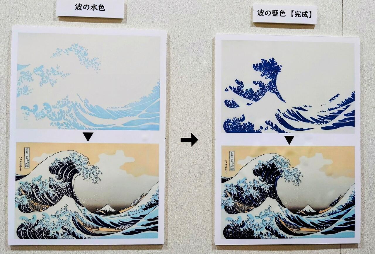 「神奈川沖浪裏」の摺りの手順が面白かった。