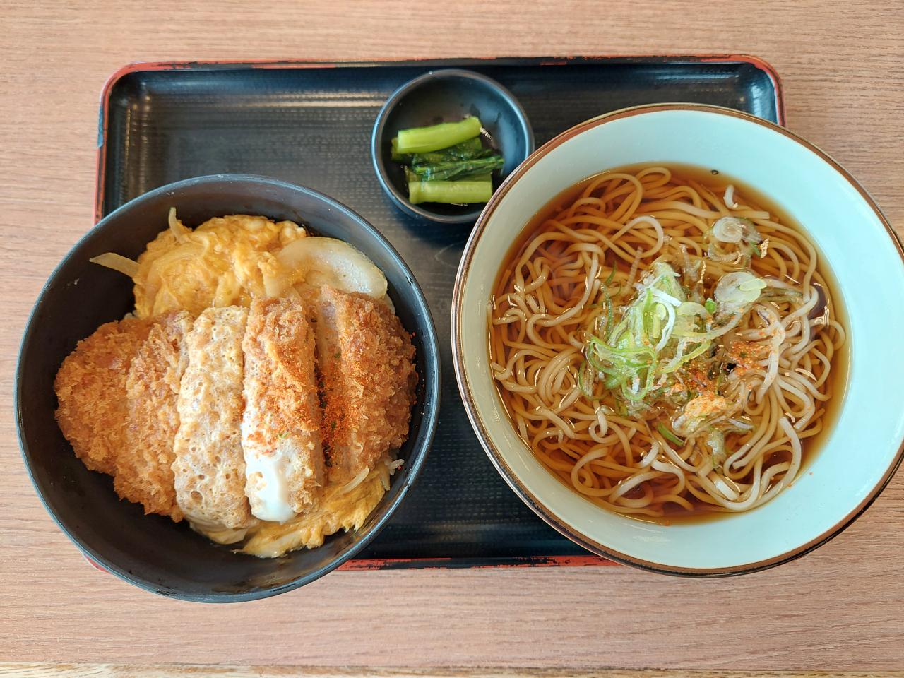 カツ丼とお蕎麦のセットにして、カツ丼は半分オットのお口へ。