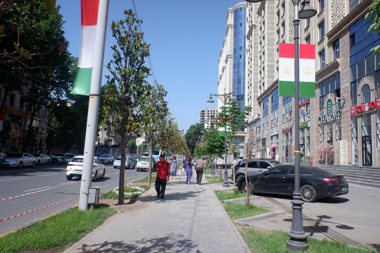 イタリア国旗にも似タジキスタン国旗の縦バージョンが通りに多く見られます。愛国心が高い国、という事でしょうか。