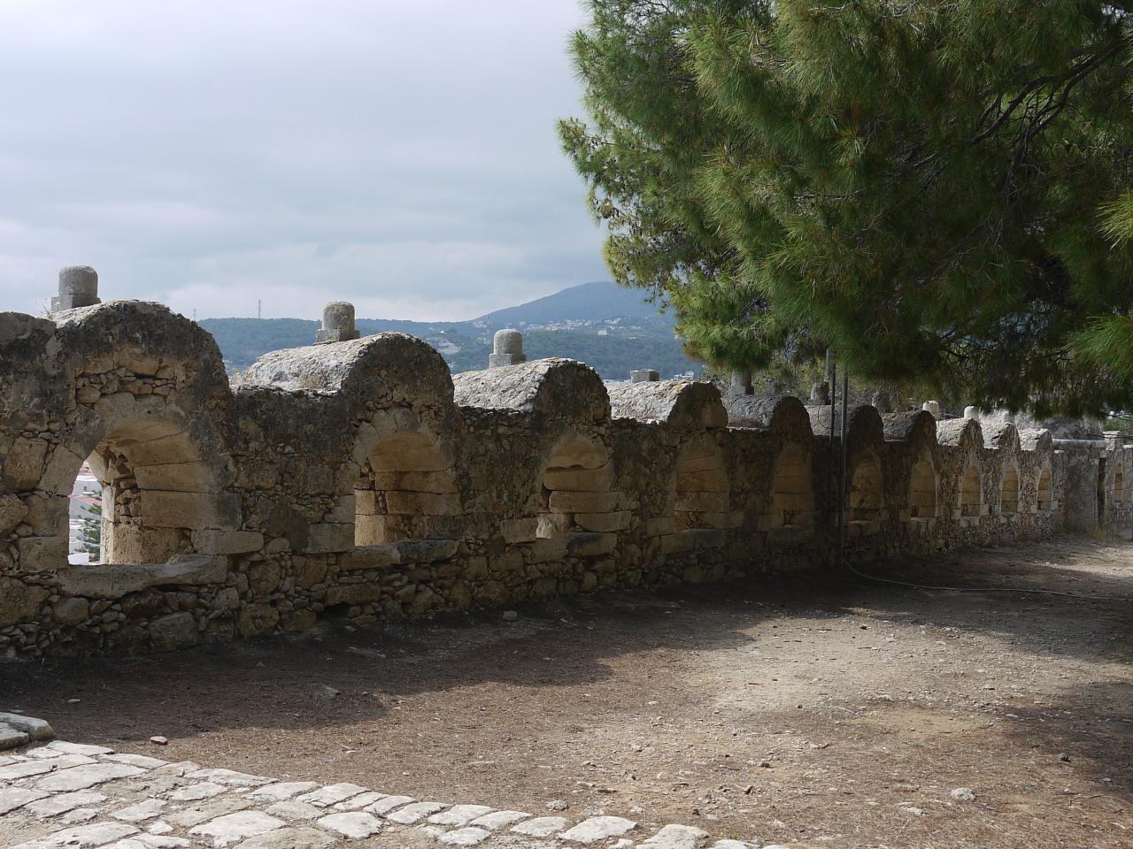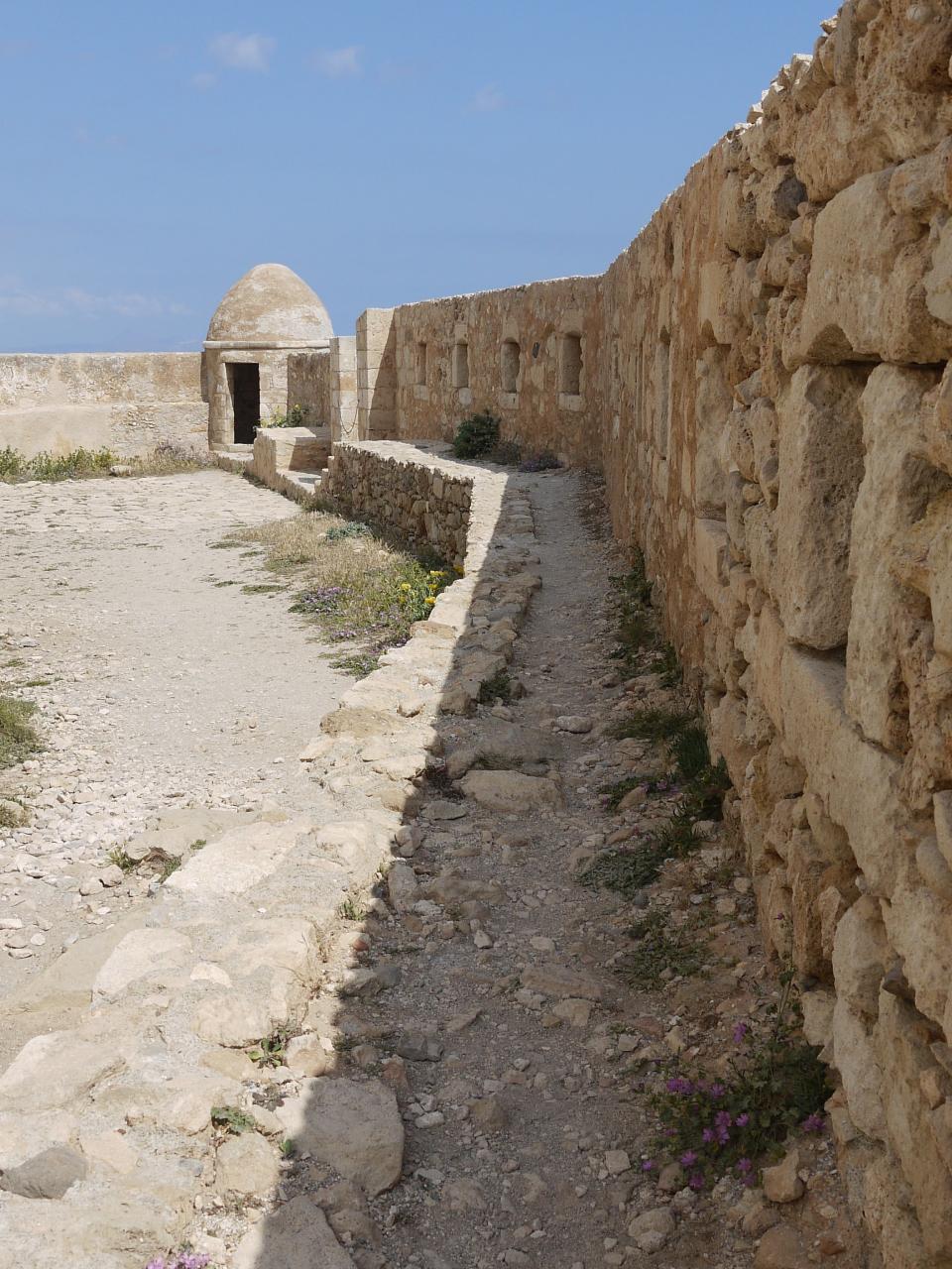 バスはレシムノン港を通り越して旧市街の高台へ、眼下に旧市街があるので海沿いを歩いてフォルテッツァ城砦へ -