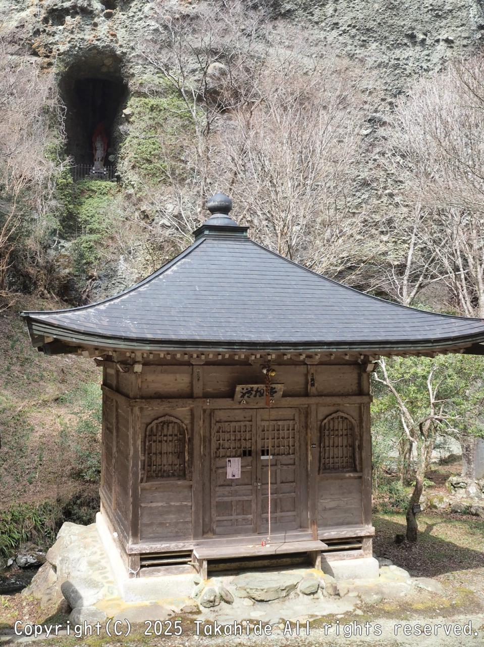 祠の右手には『岩屋へ七十五丁』と刻まれた地蔵道標が立っています。