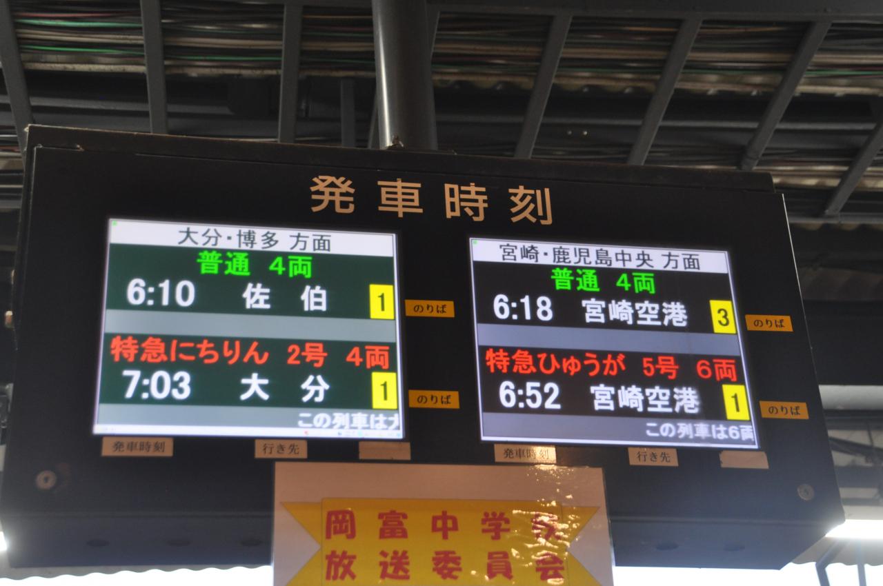 延岡駅から発車する上り各駅停車は6:10発佐伯行きと20:07発佐伯行きの2本しかありません。(ほかに特急列車が8本)