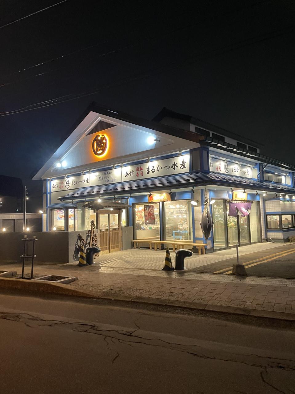 函館最後の晩餐は回転寿司を食べたくて、函館駅前の回転寿司屋さんに行きましたが、噂通り2時間待ちくらいで、そんなに待ってられないと思い、電車で移動してこちらのまるかつ水産へ