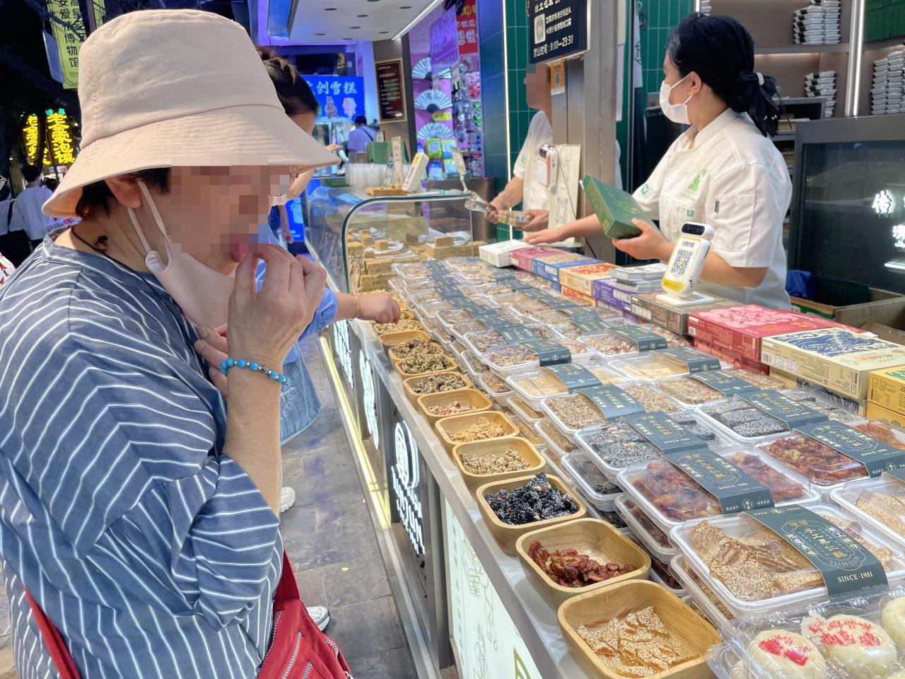嫁隊長は、初めて見る回民街の小吃の数々に興味津々だ。