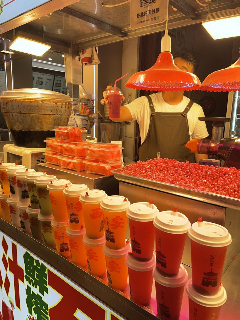西安は、もちろんシルクロードの終着だから、西瓜やメロンの屋台フルーツトラックがたくさん並んでいる。