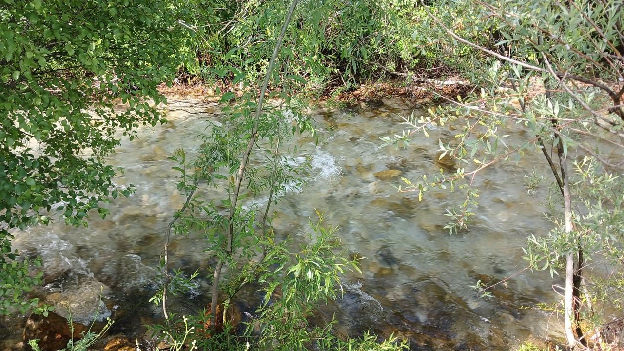 朝さんぽにでかけます。今日も豊富な水が流れて行く。 -