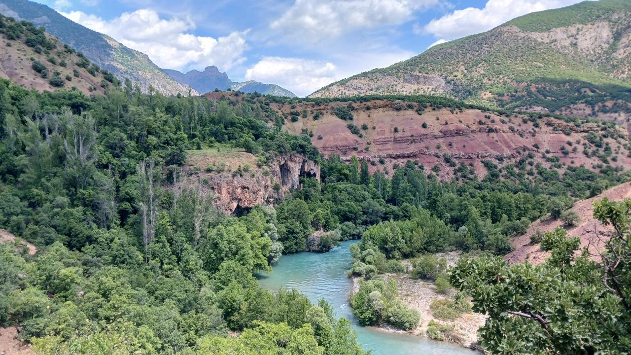 ムンズル川と山々を望むビュースポット。きれいやなぁと見とれていると、アリ君が話出した。『デルスィムの反乱の時、あの洞窟のとこでこの川が真っ赤に染まったんやで』と。セラッピーは聞くのも堪えられへんと、難しい顔して離れていった。(トゥンジェリ周辺は昔デルスィムと呼ばれていた)
