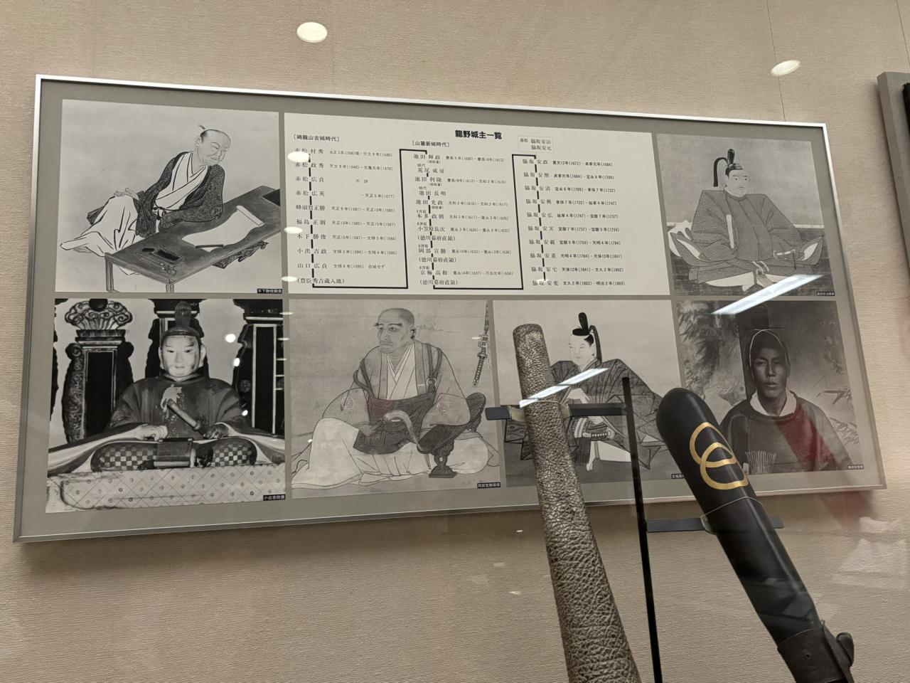 脇坂安治の座像の写真パネルがありました。