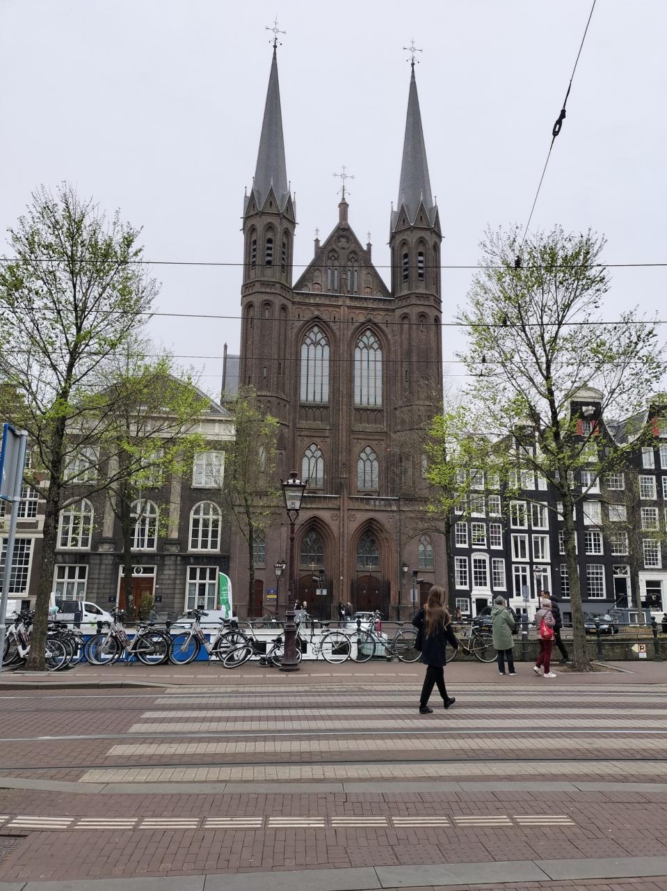 今日は フェルメールの「真珠の耳飾りの少女」を見るために、 デンハーグのマウリッツハイス美術館に行きます。中央駅から美術館に向かう途中にあった 教会。