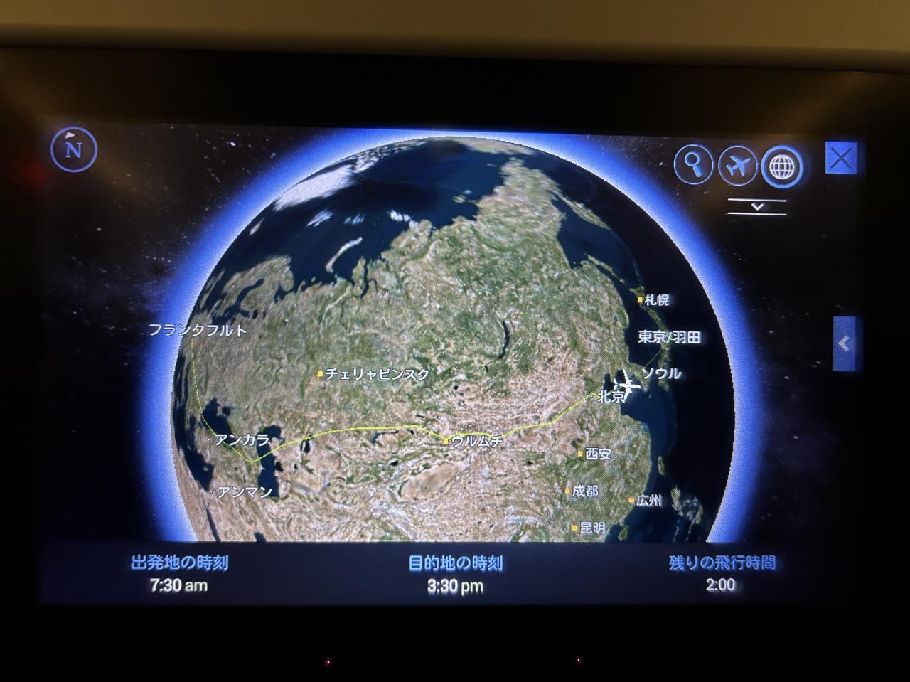 ドイツ時刻で7:30、日本は15:30。まもなくソウル上空。