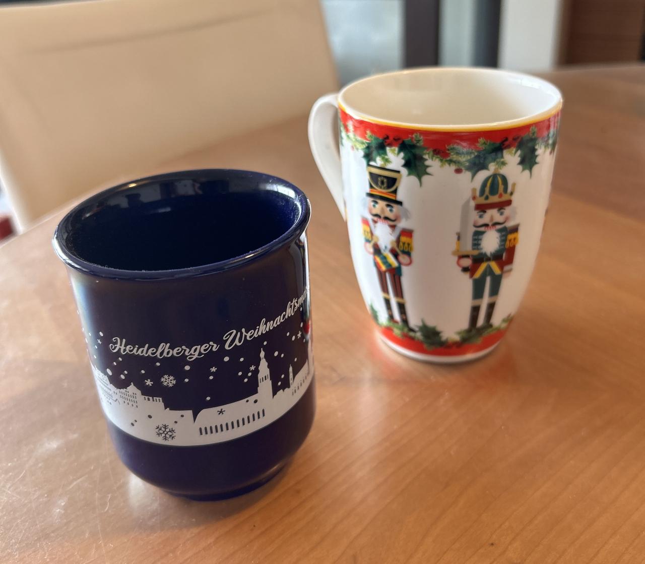 最後にハイデルベルクの記念にカップが気に入ったので、ホット炭酸ジュースをいただくことに。カップ込みで£6.5。これで本当にお腹は満杯になった。(左のカップ。こちらは後で撮ったもの。)