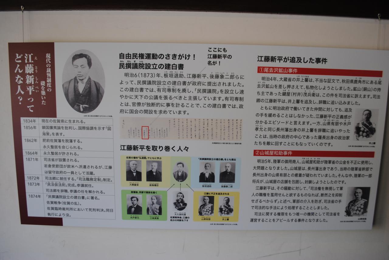 現代の裁判制度の礎を築いた江藤新平についての説明書き。
