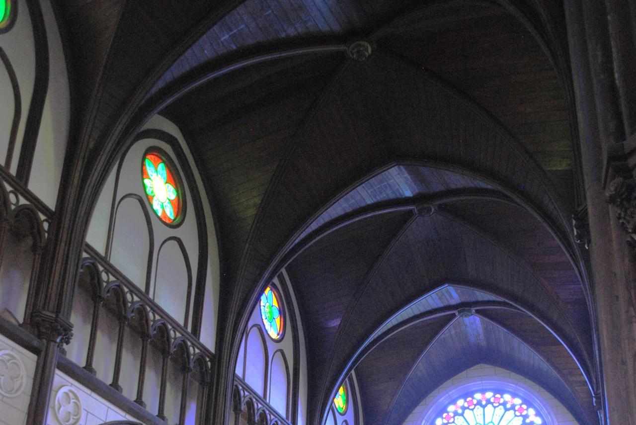 日本らしくケヤキの木で造られたゴシック様式の天井です。