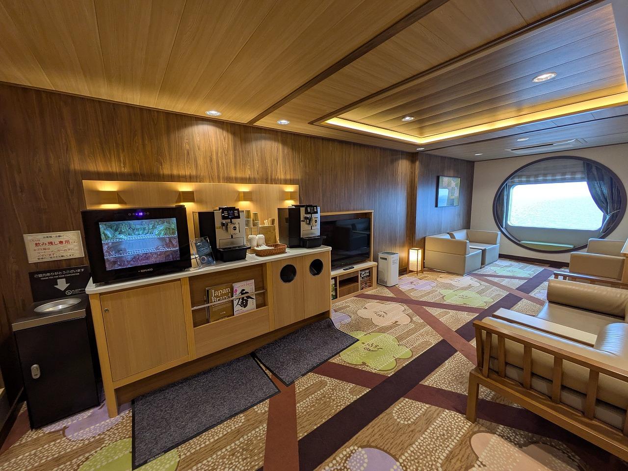 8階のフリースペース、同じようなスペースが6階や7階にもありました。個室のない乗客が結構占拠してました。