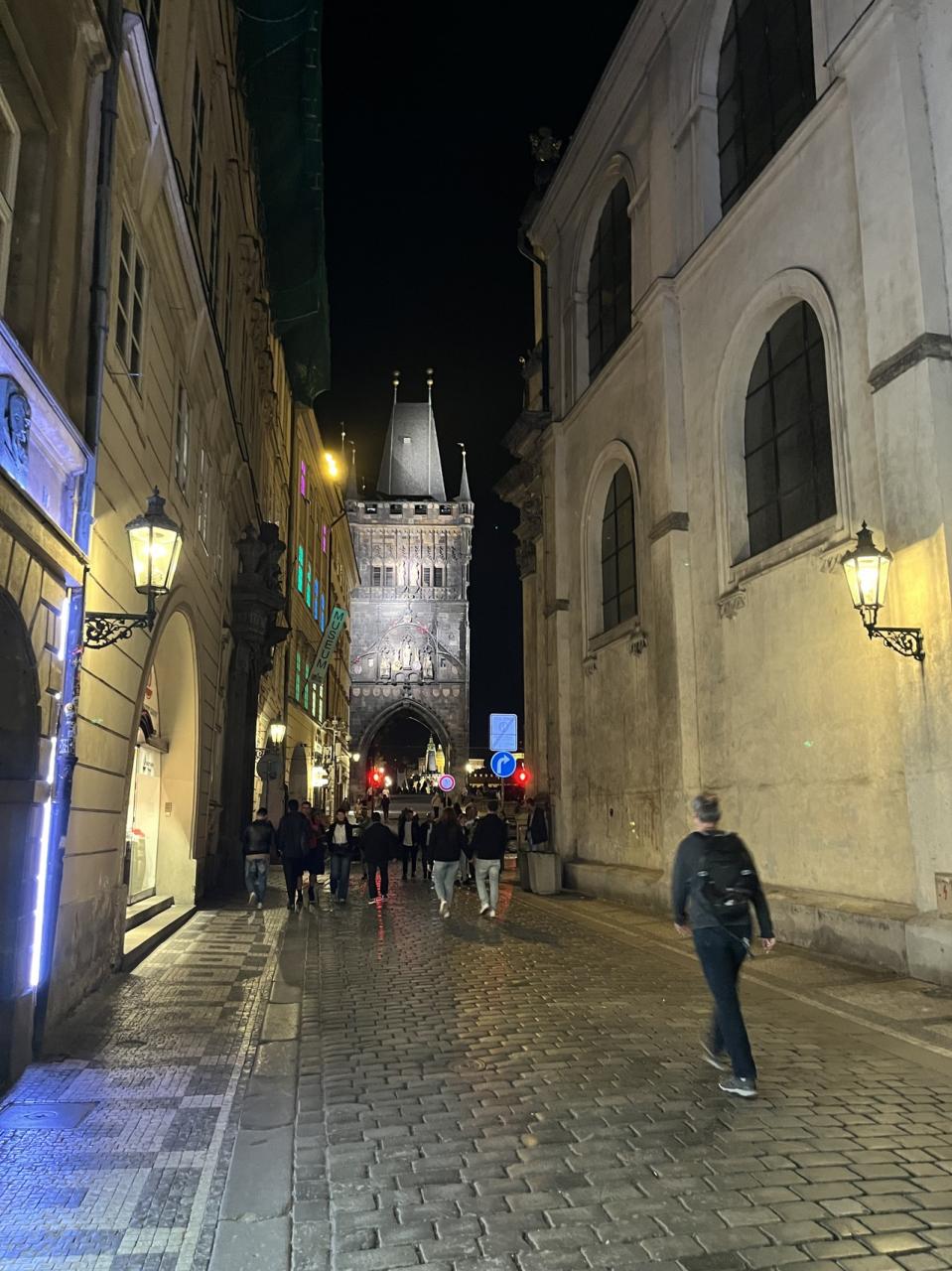時刻は22時近くになっていますが、せっかくなのでカレル橋まで行ってみることにします。2-3分程歩くと、すぐにカレル橋が見えてきました。