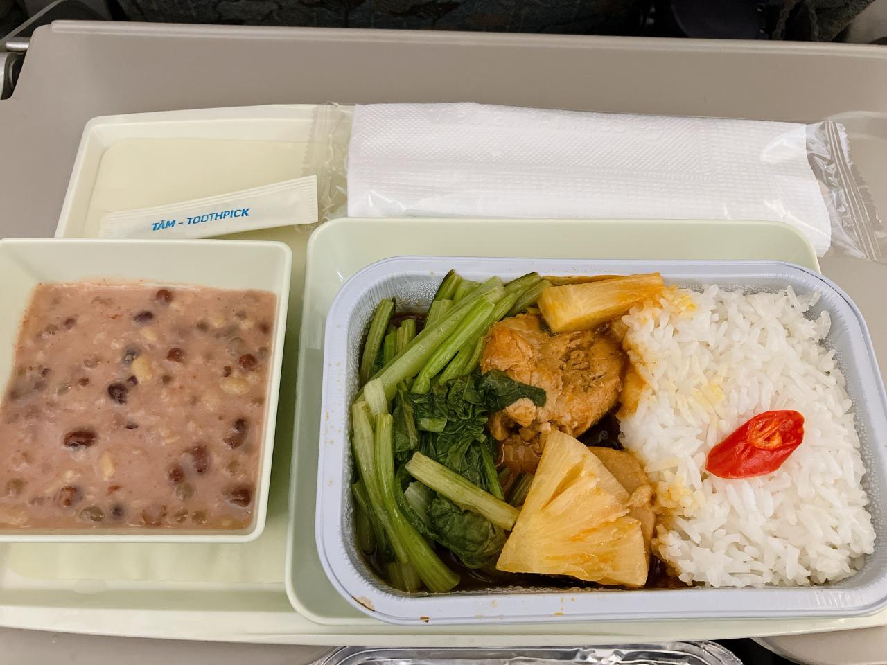 今回の飛行機は、ベトナム航空なのでご飯が付いておりました。