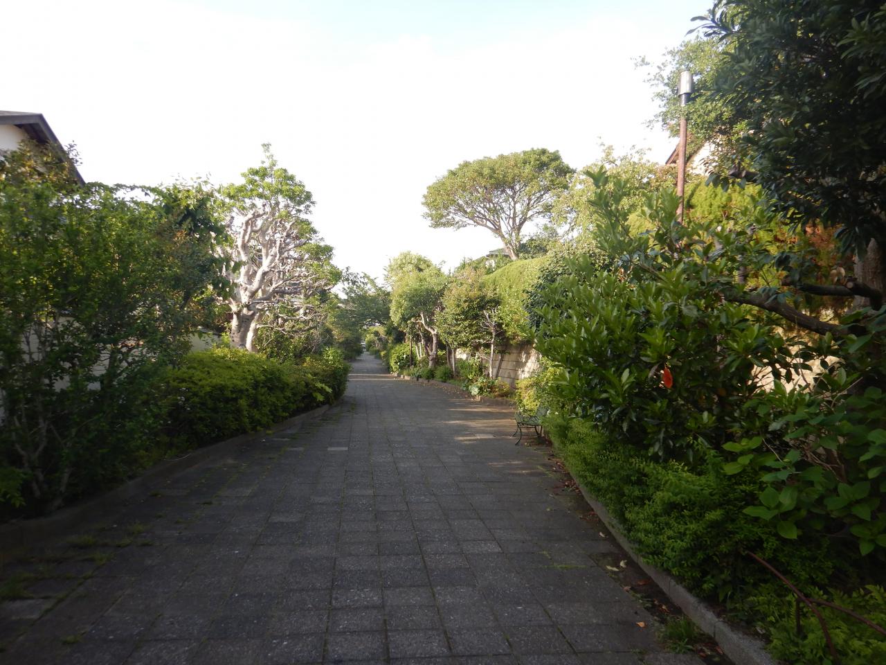 その後、道なりに南東へと住宅地を進み、七里ガ浜の住宅街中心のプロムナードを通過。