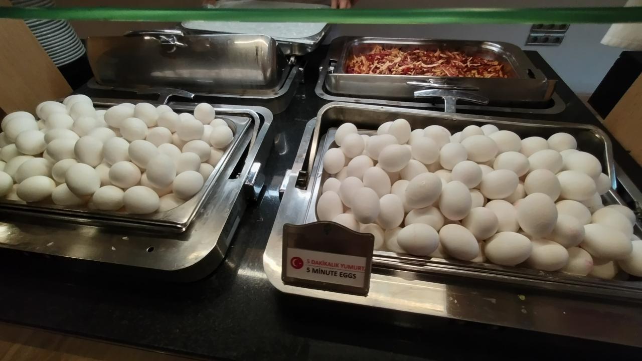 トルコ6日目の朝も7:30出発のため、朝食会場が開く前からウロウロ。とてもメニューが豊富で、楽しいです。お決まりのオリーブ、いろんな色のオリーブの塩漬け。