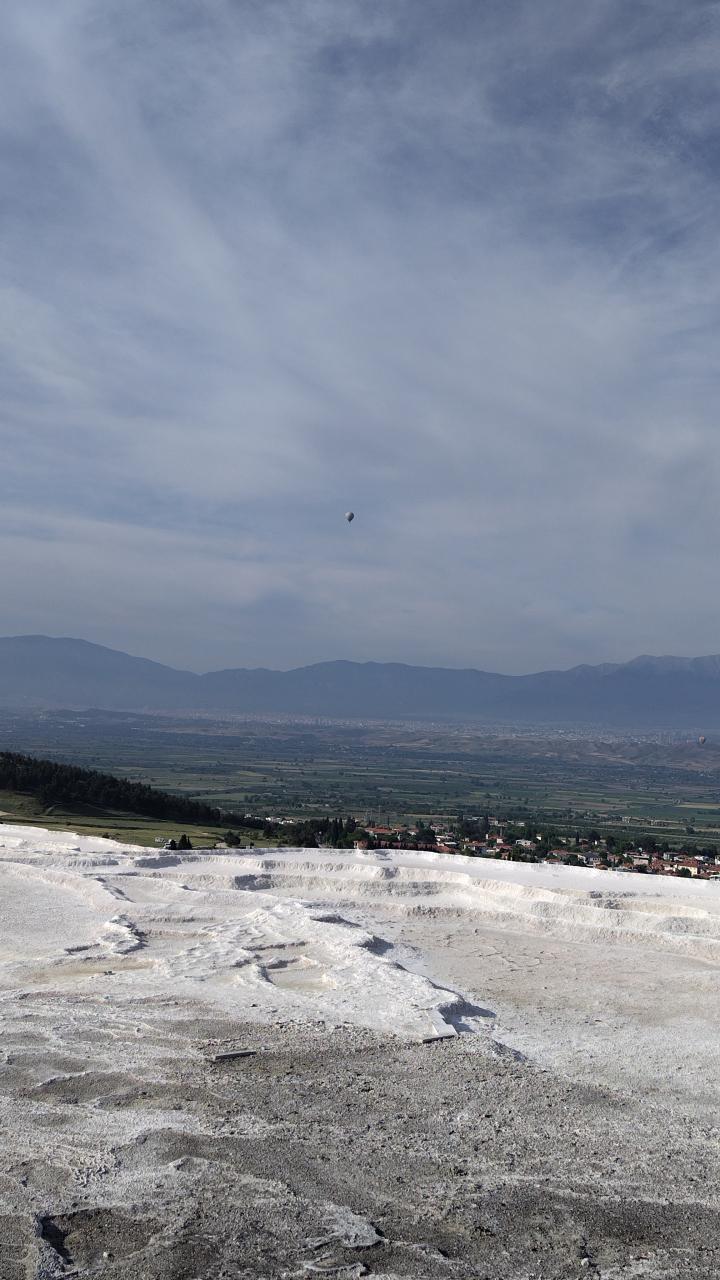 パムッカレでも気球は飛んでおり、ちょうどホテルから見ることが出来ました。私達のツアーでもオプションでパムッカレの気球体験があったのですが、カッパドキアで乗船出来たので、パムッカレで申し込んだ方はいなかったようです。