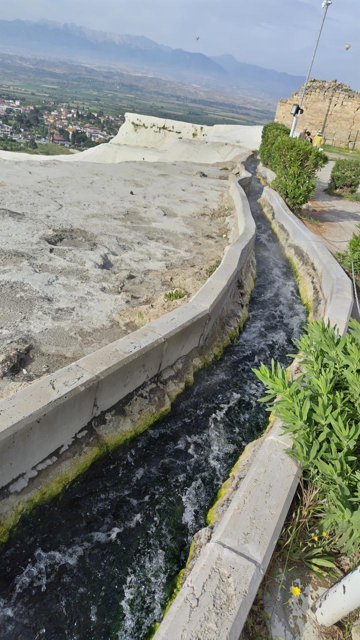 全部が真っ白とはもはや言えません。こうしたパムッカレの景観保護を行うなら、周辺のホテルとかの温泉利用を制限すべきではないかしら。