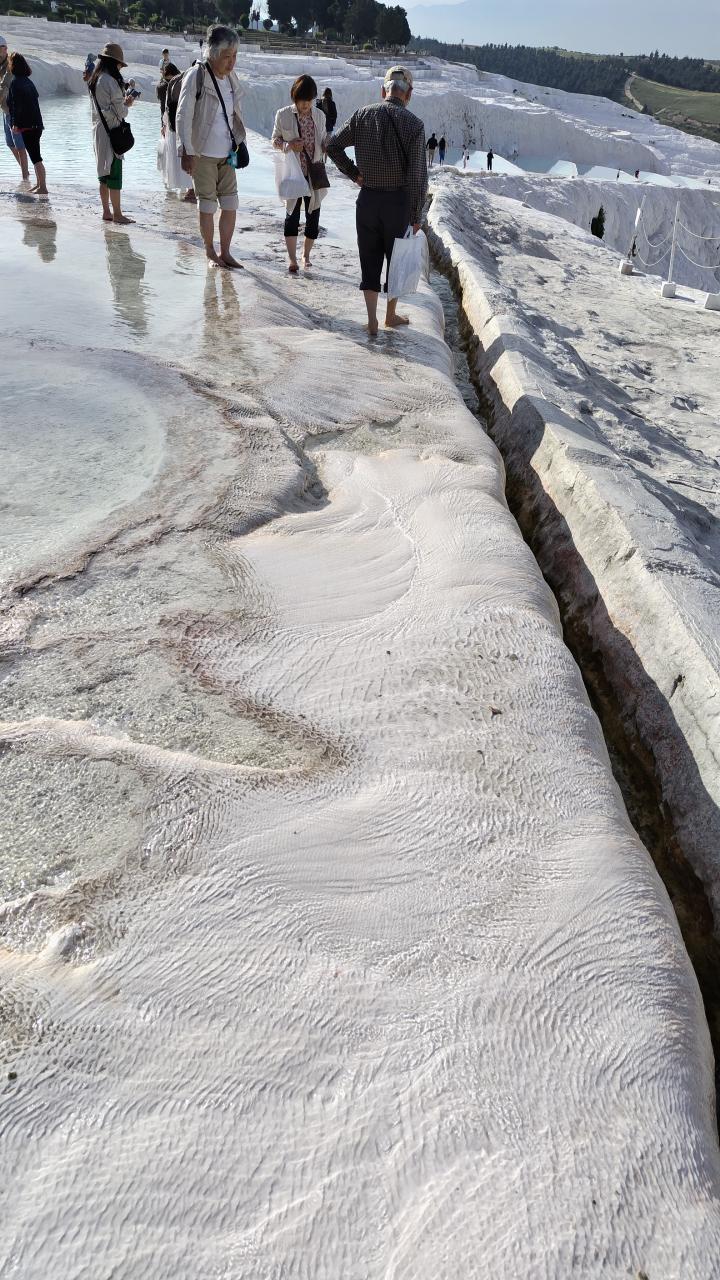 かなりの距離を徒歩移動して、パムッカレの石灰棚の見えるところで自由時間となりました。