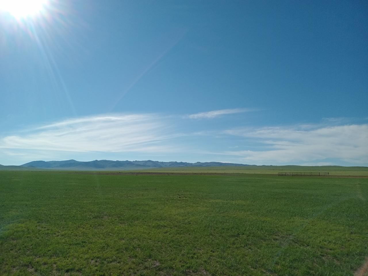 遠方の山々も草原と見事マッチしています。今日も晴天下で雄大な草原をずっと眺められます。