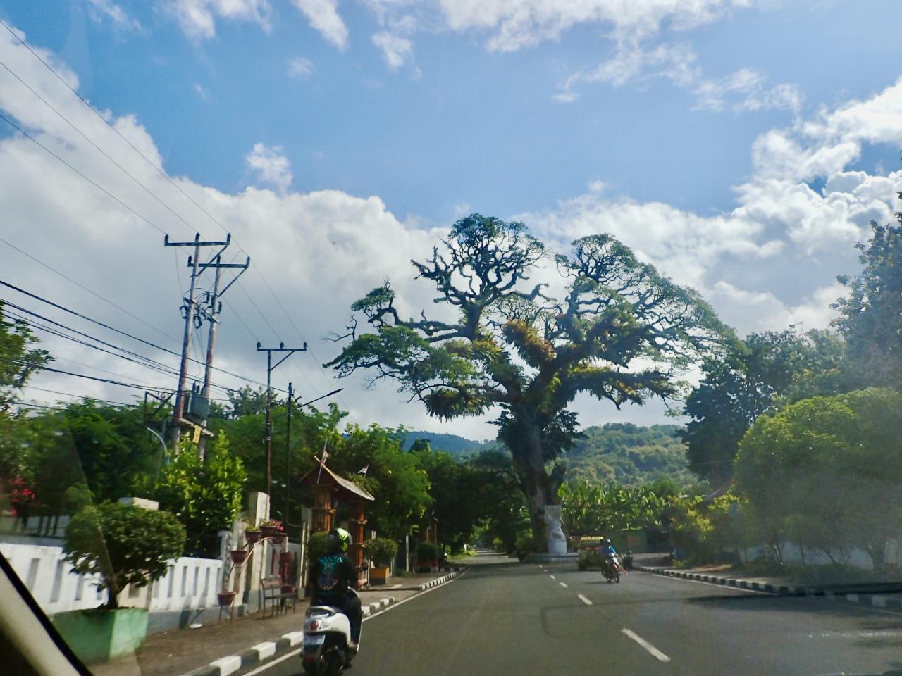 道の真ん中に聳える巨大な木。