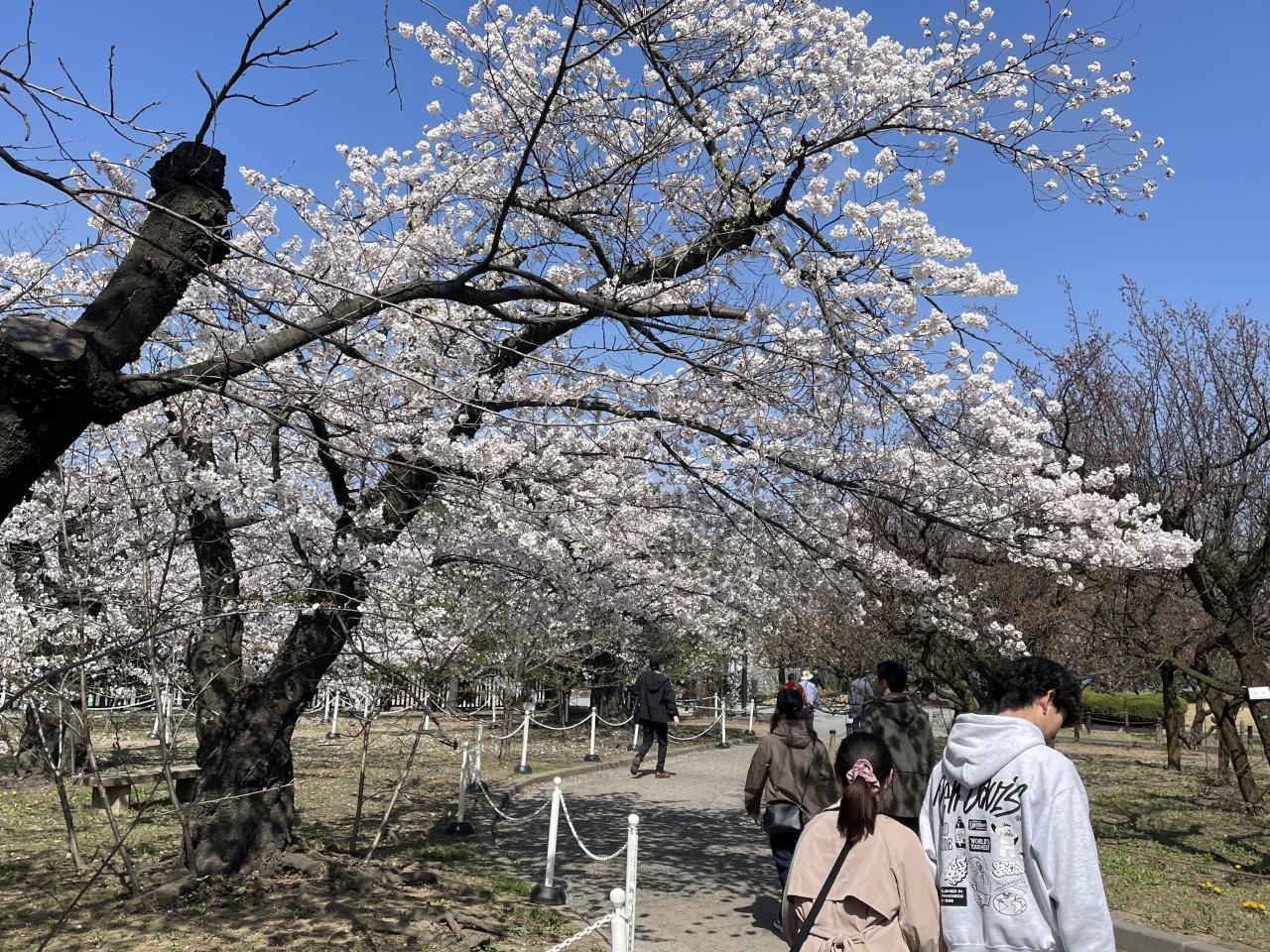あちらこちらに花見用のブルーシートが目立ちます。