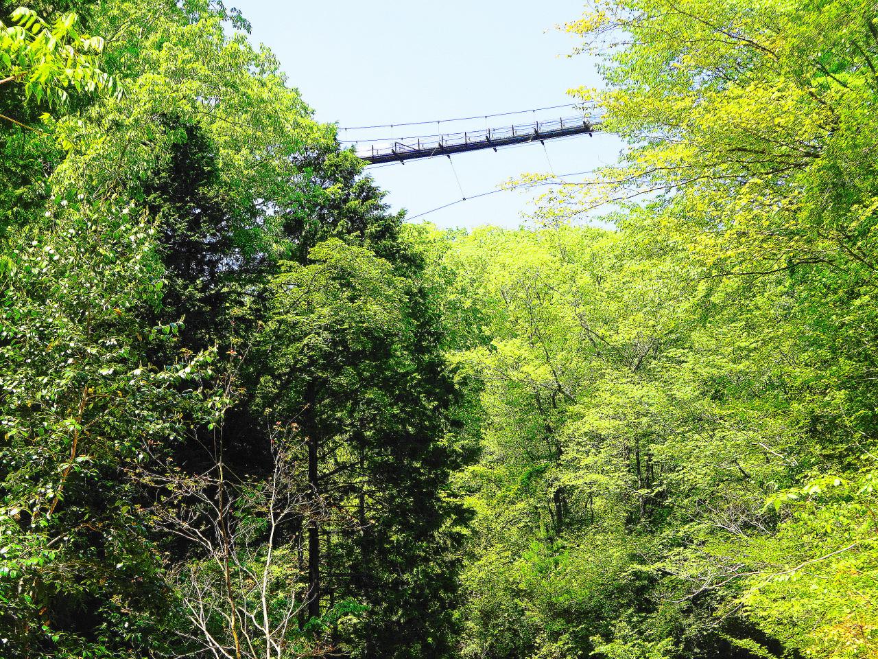 全長280m最大地上高50mの木床版つり橋を渡ります。