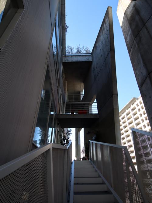 また、12月に来た時、摩訶不思議なビルを見つけました。時間がなくて遠くから眺めただけでしたが、今回、近くへ行ってみたら、その複雑な構造に目を瞠りました。