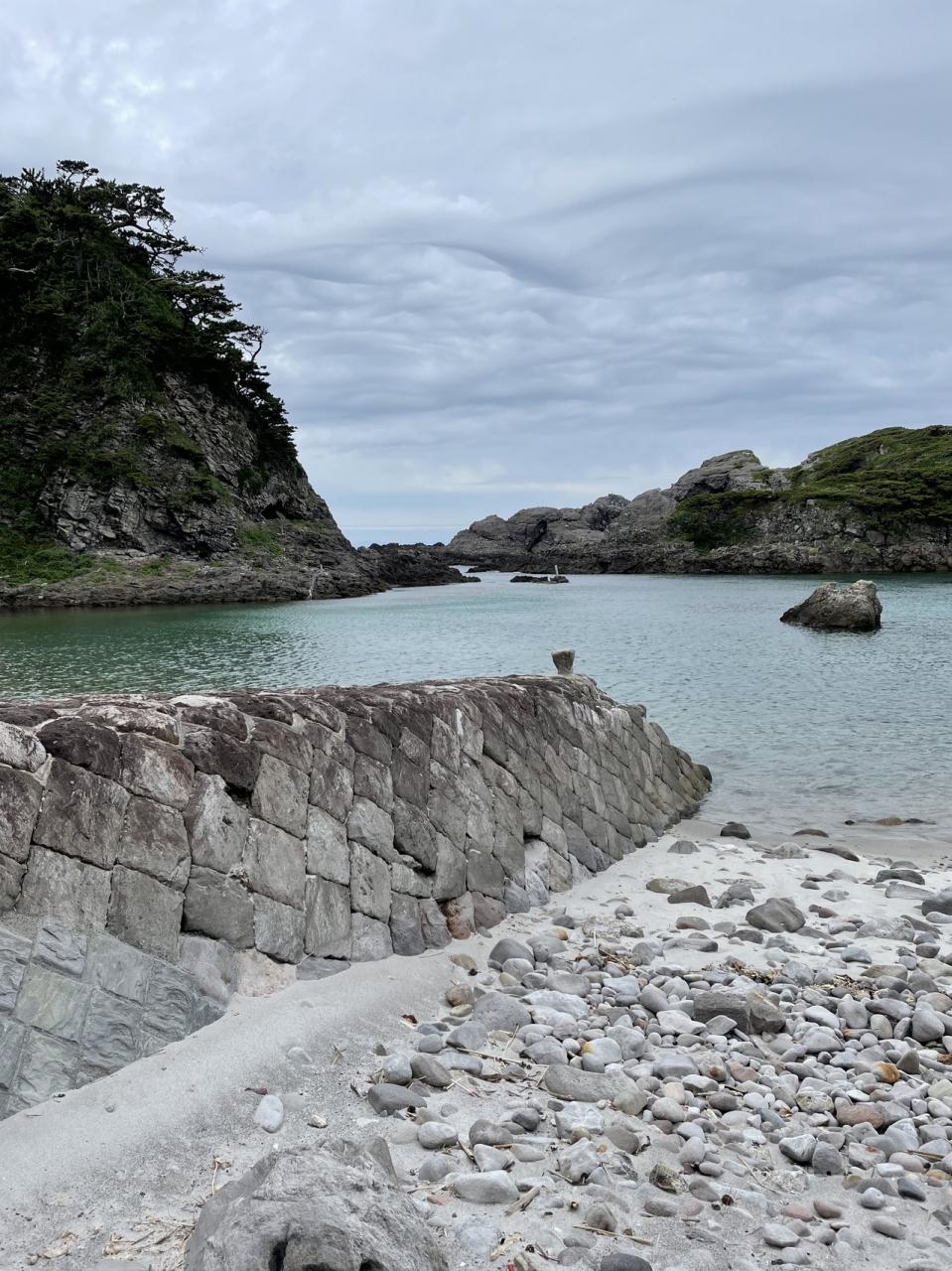 泊海水浴場のなまこ桟橋。珍しいものだそうです。海水も美しい。
