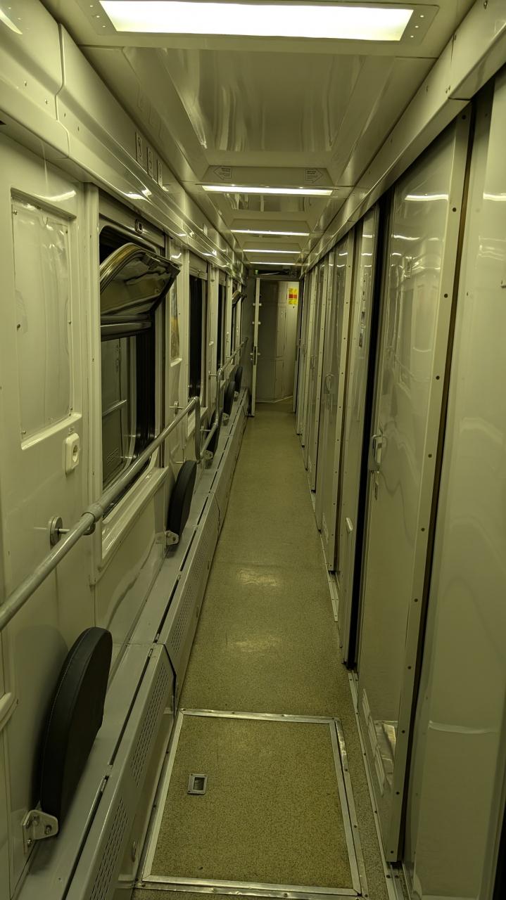 スタンダード(開放寝台、おそらく旧ソ連におけるプラツカルト)、スタンダードプラス(ドア付きの4人部屋)、デラックス?(ドア付きの2人部屋)の3種類があるとのこと。