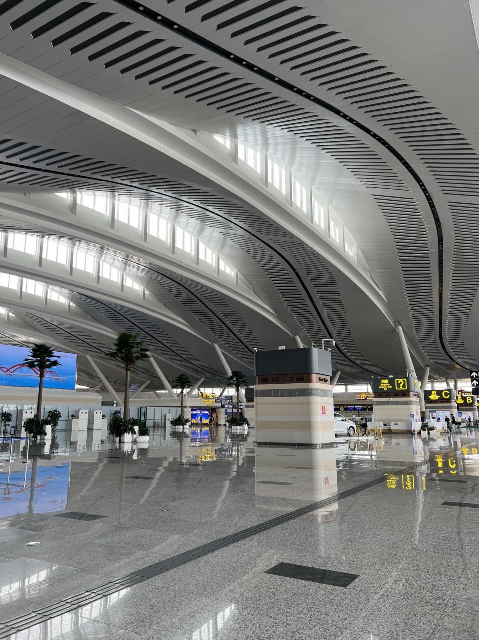 煙台蓬莱国際空港は市内からかなり離れていて、タクシーで1時間程度掛かります。およそ120元でした。2023年旅客数データによると年間およそ750万が利用。セントレアが917万人だったので、セントレアより若干少ない程度です。その割にはガラガラの印象ですが、セントレアも時間帯によってはガラガラなので同じでしょうか。