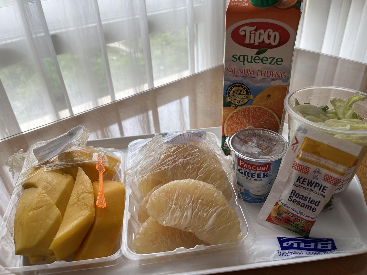 昨日買った生ライチも加えたいつもの朝食。