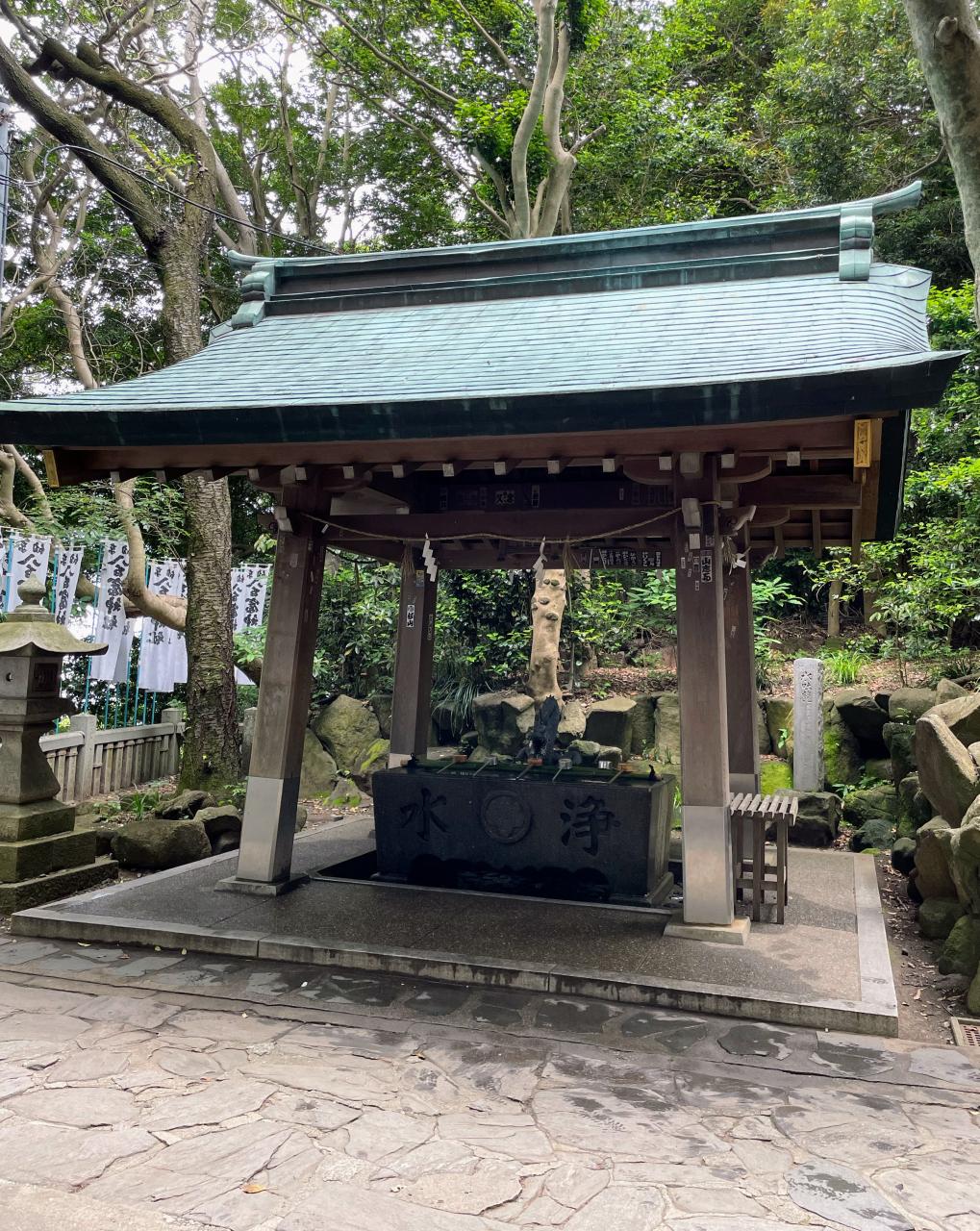 休憩所の向かいに手水舎があり、ここで手を清めて
