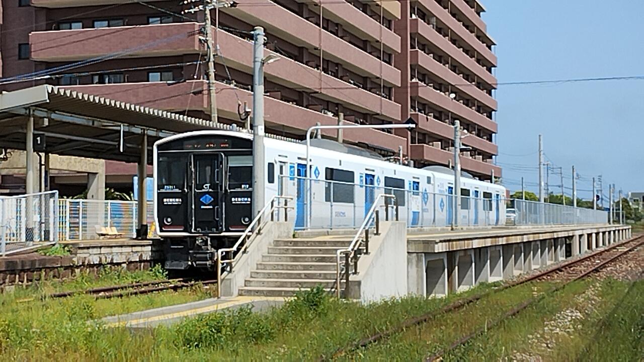 東日本の男鹿・烏山のように充電用の架線が無いのは、香椎からの距離が男鹿・烏山の半分程度だからでしょう。西戸崎駅 駅