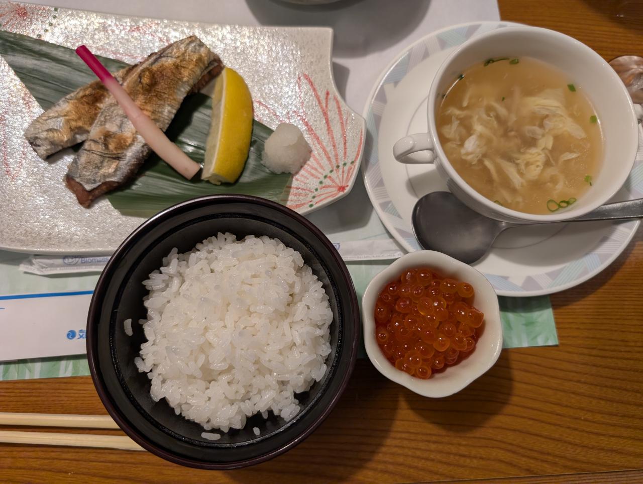 宮城県産のひとめぼれですが、贅沢なことに、フカヒレのスープとイクラがついていました。
