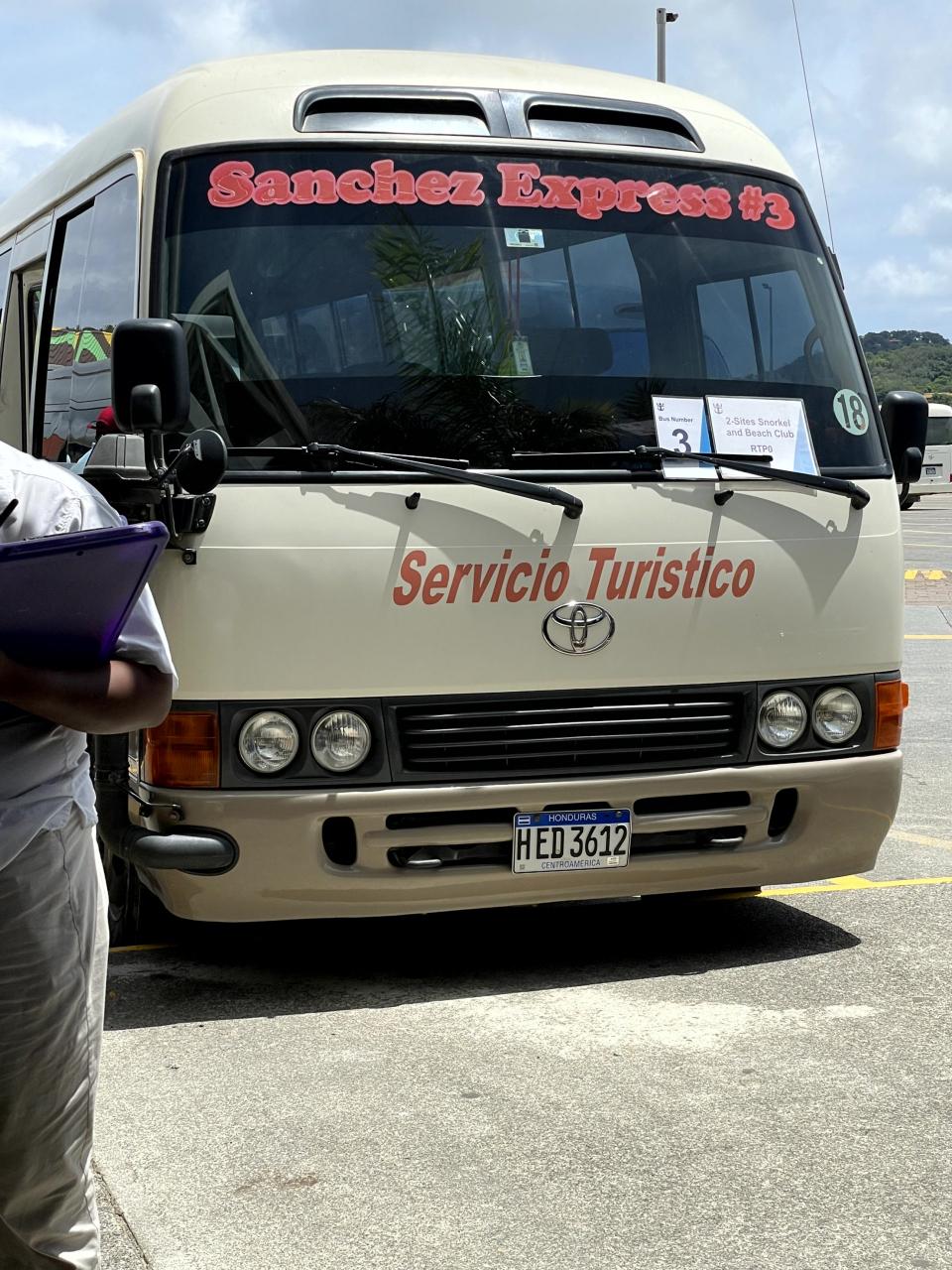 こちらのバスでシュノーケリングスポットへ向かいます。