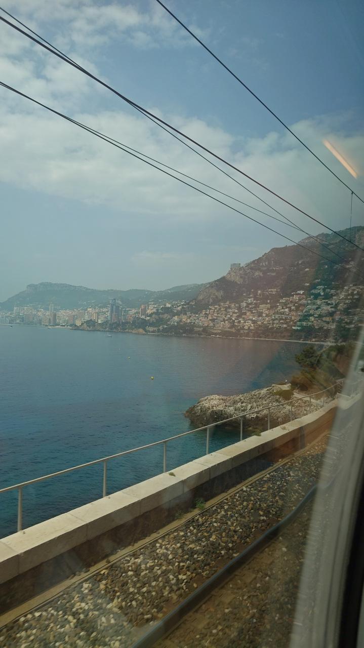 この路線はモナコとかニースを通るので乗客も多い。車窓からはビーチがどこまでもつずいていて、海水浴客がいっぱいだ。リゾートに来たな~という感じ。車窓を眺めているだけだけど。