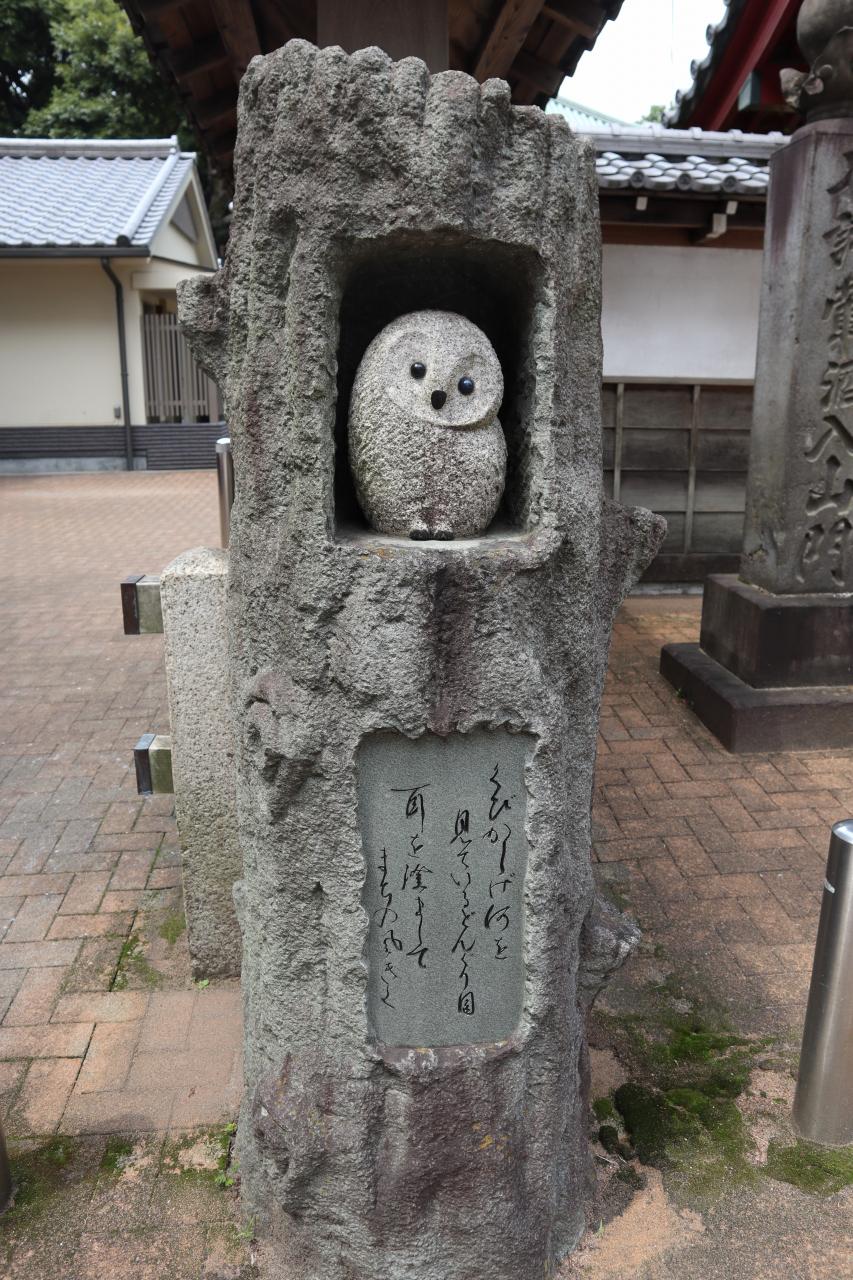 山門脇に可愛らしいフクロウの像があります。