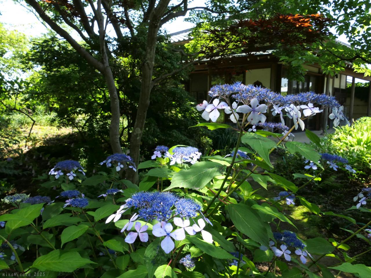 「水屋」の横から、中央道路(写真左)沿いにアジサイが咲いています。