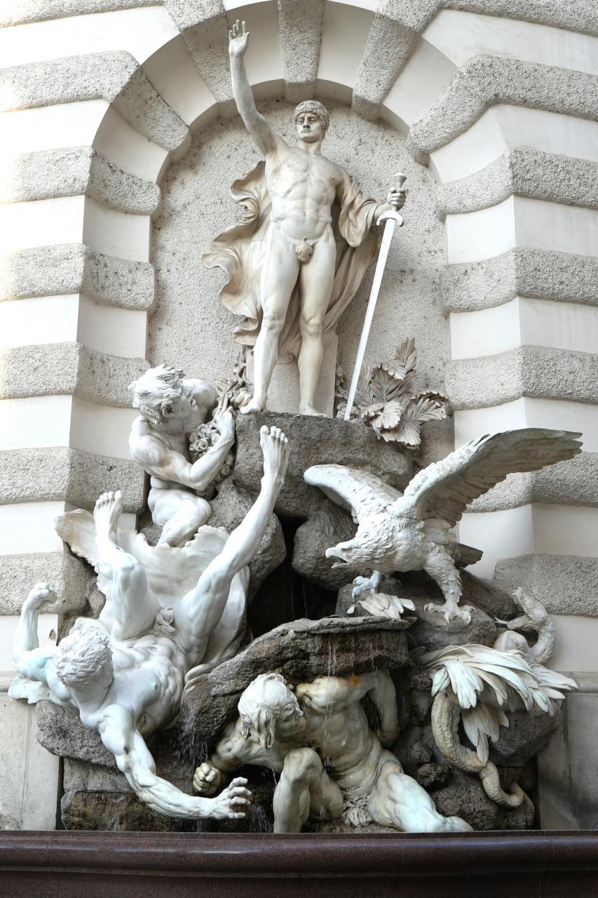 船を取り囲む大理石の彫像(海の神ポセイドン、巨人、海の怪物)は、オーストリア=ハンガリー帝国の海軍の寓意です。 -