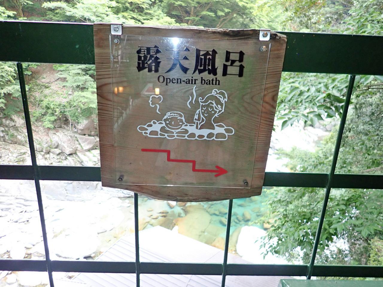 川沿いの露天風呂は4階の宿専用ケーブルカーで5分ほど降りていきます。 -