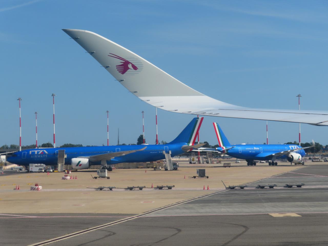 あの青い機体は何? 元アリタリアのITAエアウェイかな。